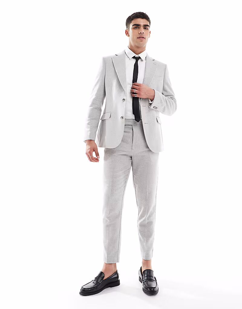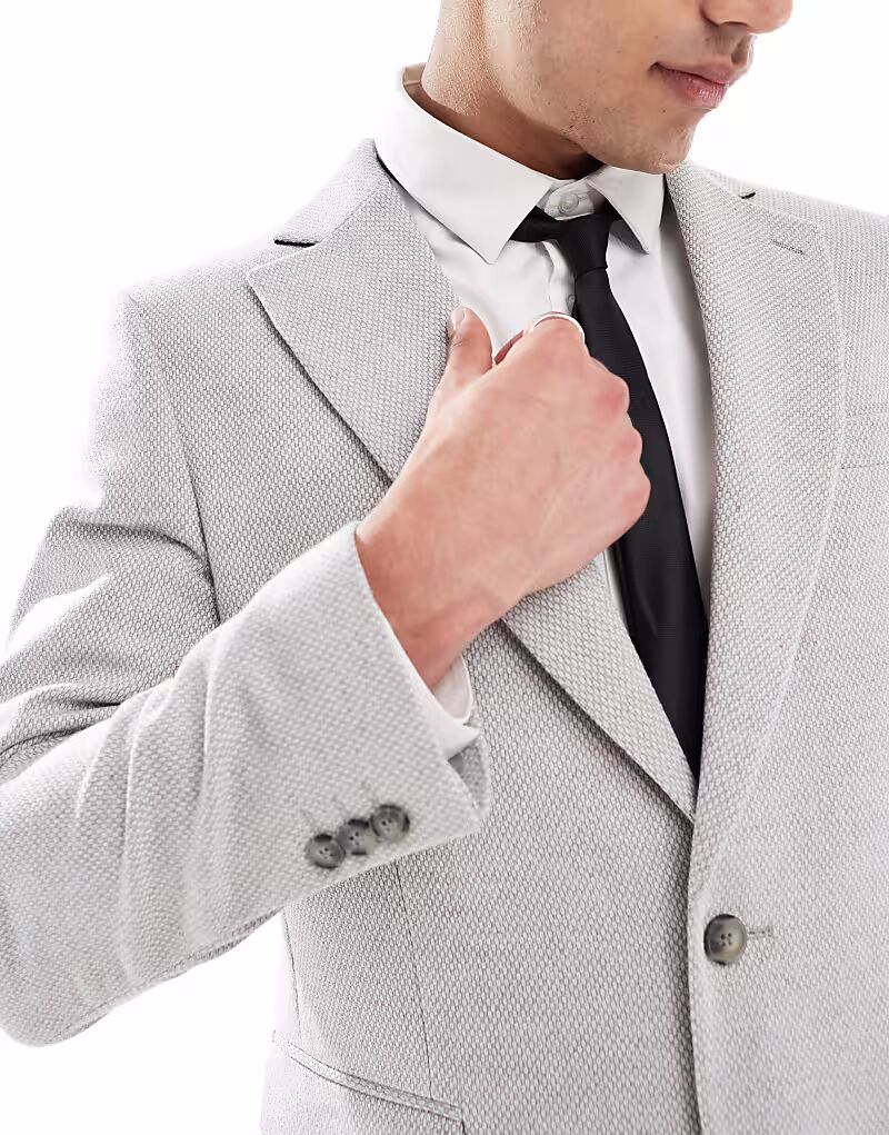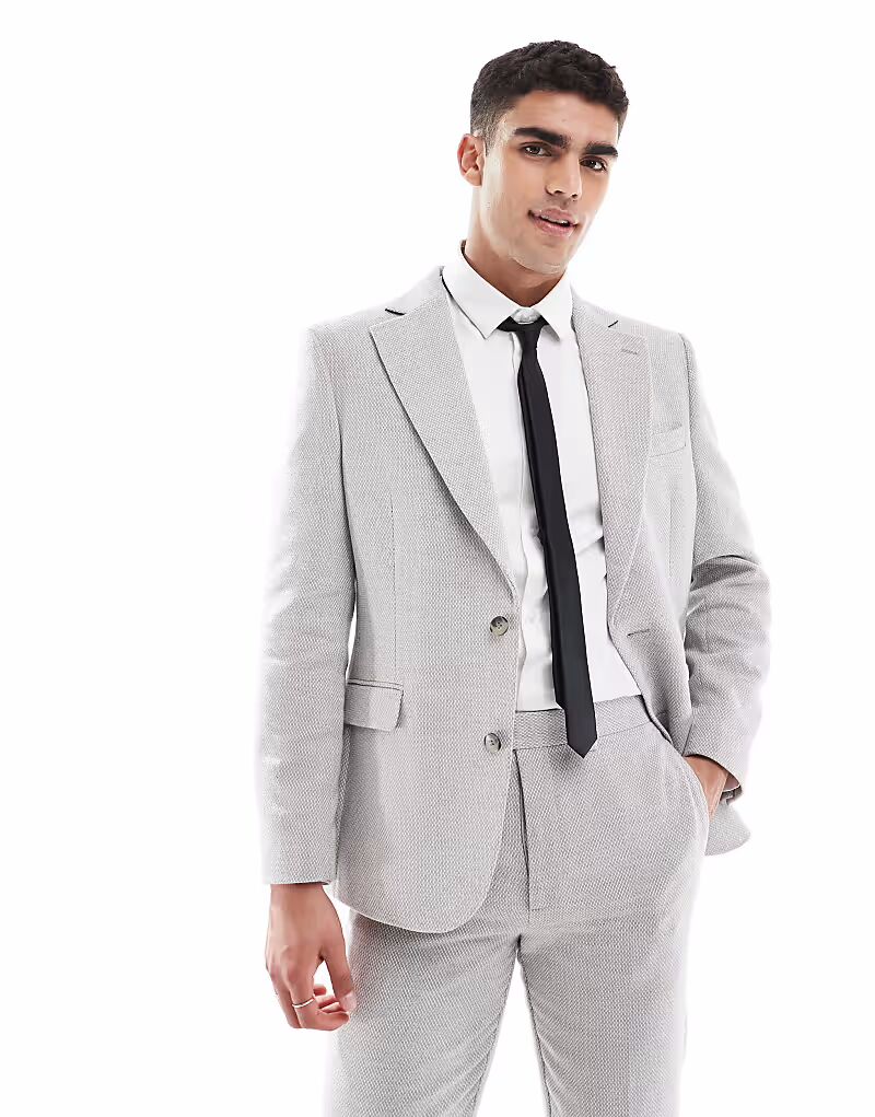 Тонкий пиджак из шерсти серого цвета Asos Design