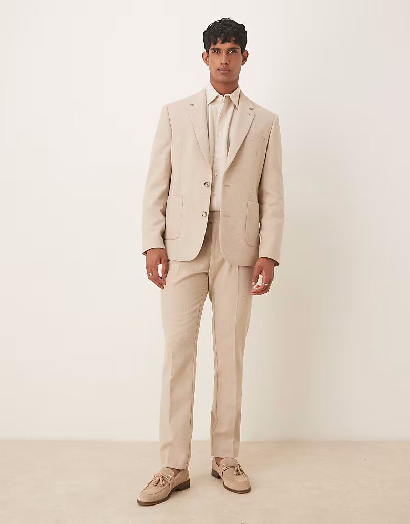 Тонкий пиджак из шерсти Asos Design, серо-бежевый
