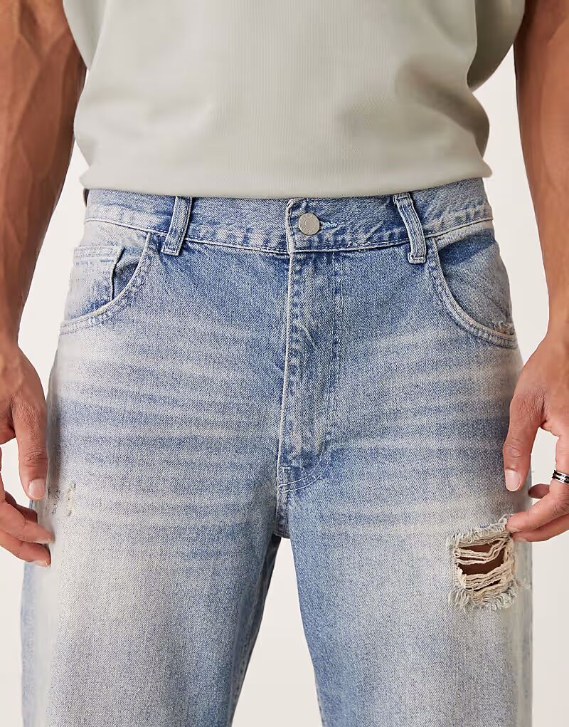 Прямые джинсы, средне-синие, с дырками Asos Design