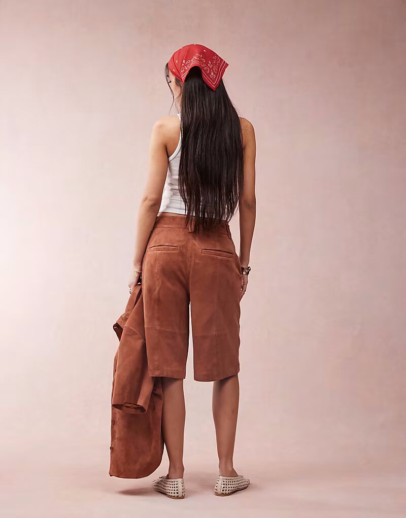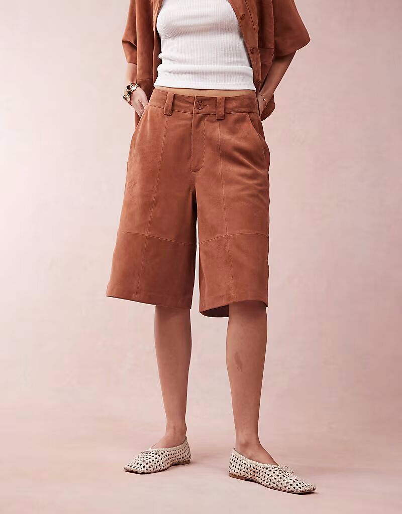Замшевые шорты-бермуды бежевого цвета Asos Design