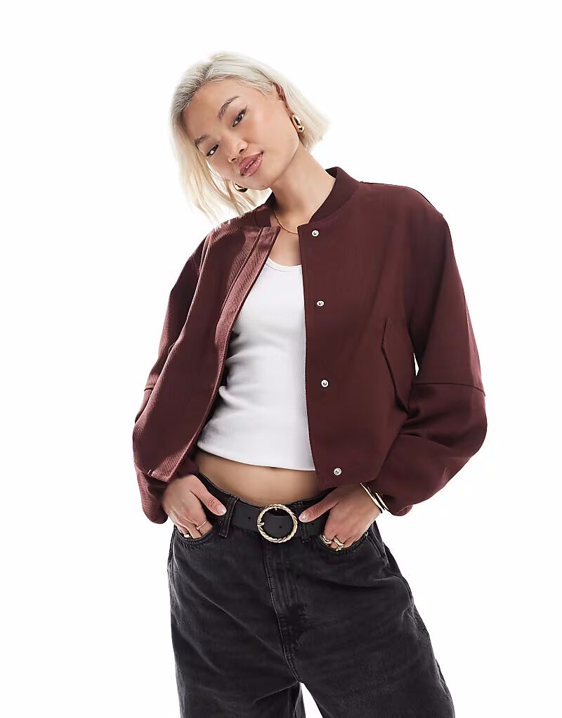Строгая куртка-бомбер бордового цвета Asos Design