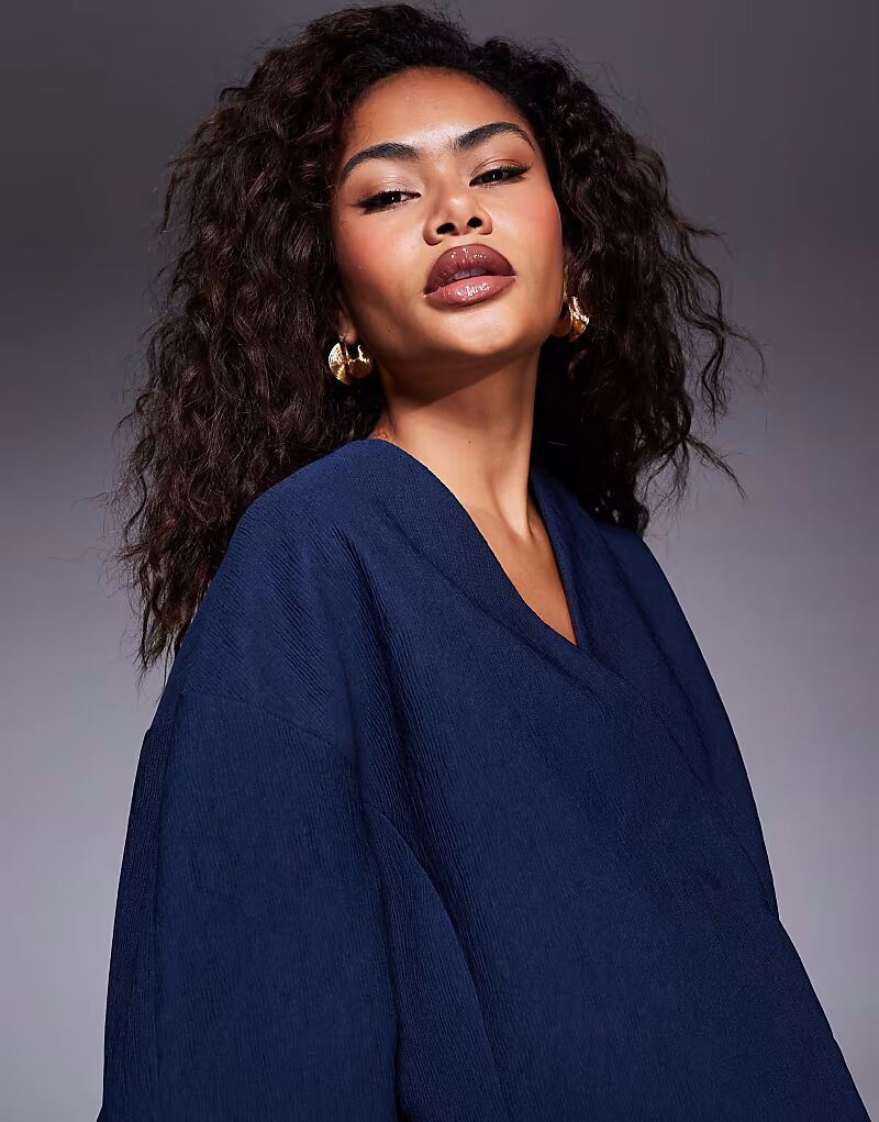 Укороченный фактурный блейзер темно-синего цвета Asos Design