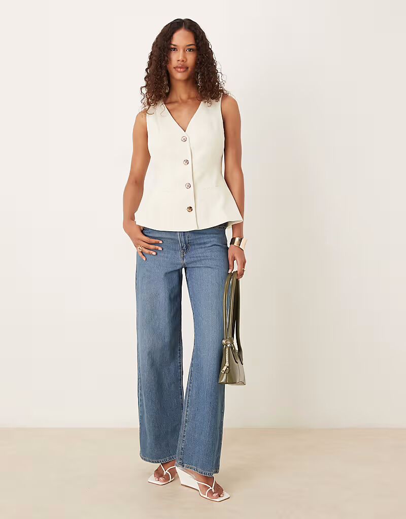 Жилет с баской, приталенный, цвета пахты Asos Design