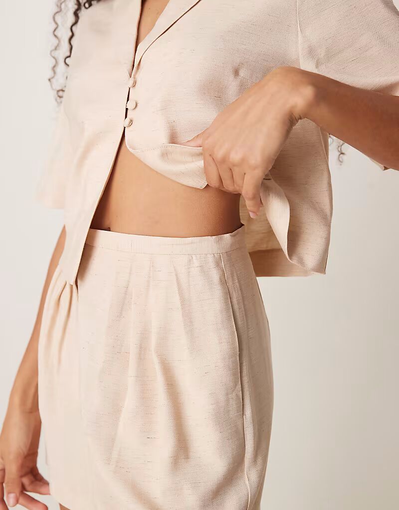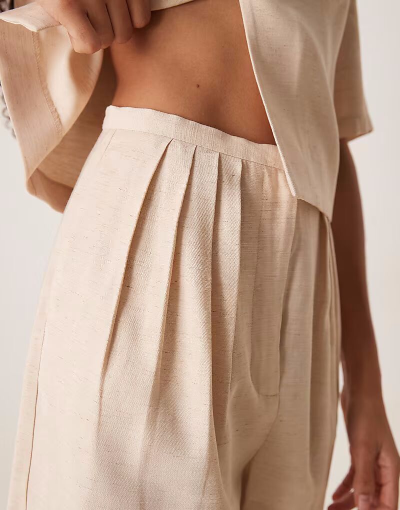 Строгие плиссированные шорты бежевого цвета Asos Design