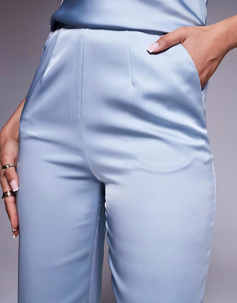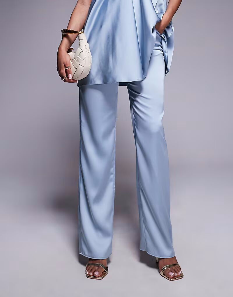Прямые брюки-клеш из атласа синего цвета Asos Design