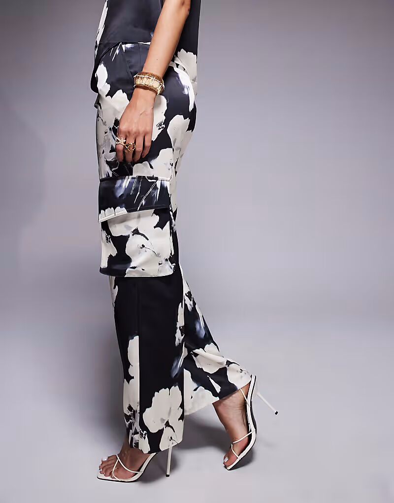 Брюки-карго прямого кроя с цветочным принтом Asos Design