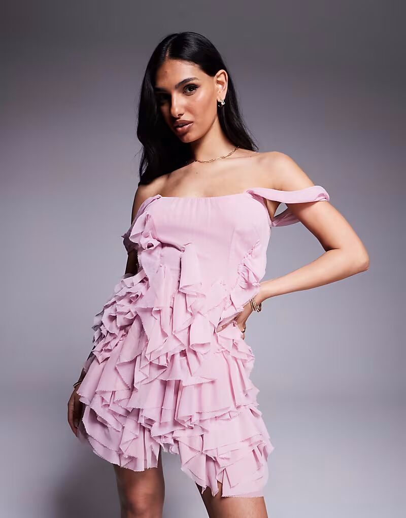 Мини-платье с фактурной драпировкой розового цвета Asos Design