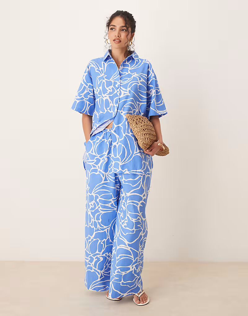 Широкие брюки с синим абстрактным принтом Asos Design