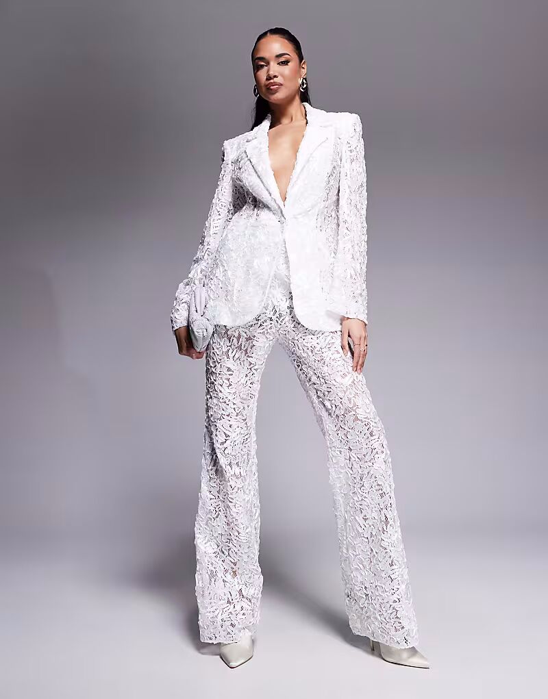 Кружевной блейзер цвета слоновой кости Asos Luxe