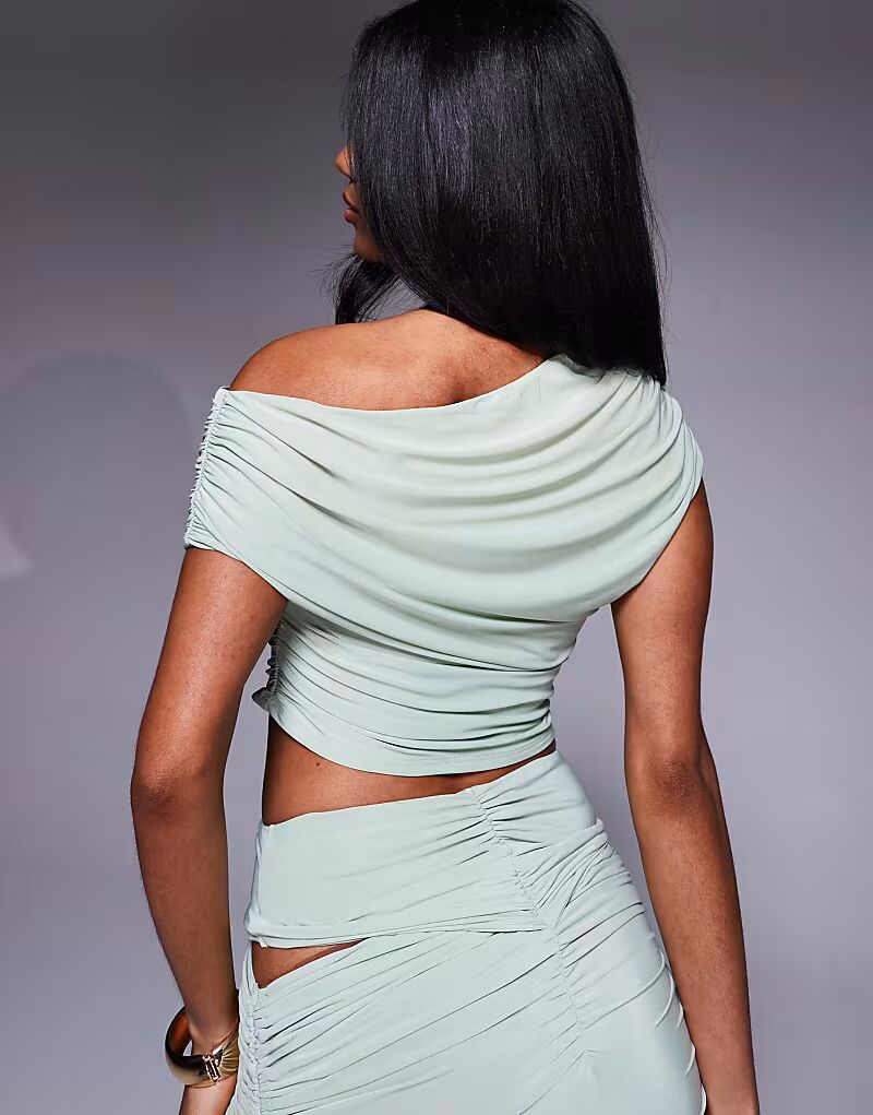 Топ с драпировкой и открытыми плечами в цвете шалфея Asos Design