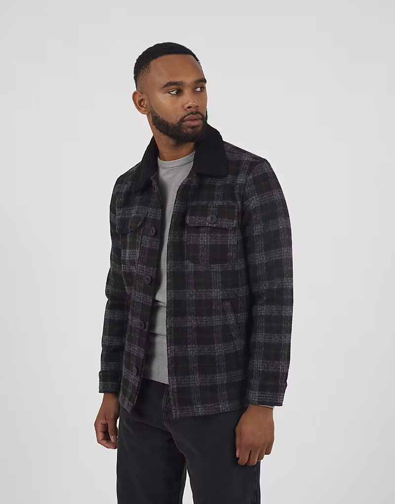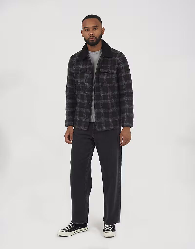 Куртка Checked с воротником из шерпы черного цвета Brave Soul