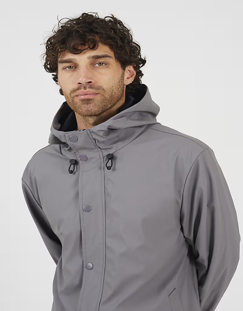 Прорезиненная куртка-парка с капюшоном серого цвета Brave Soul