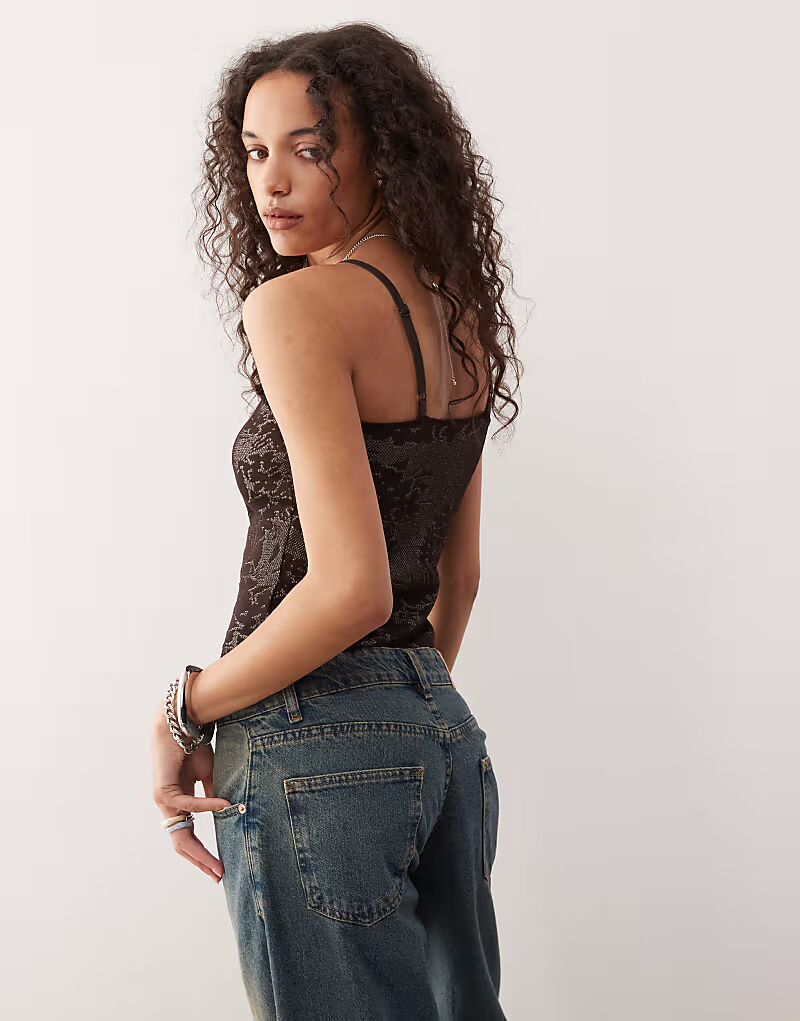 Вязаный топ с оборкой коричневого цвета Collusion 3 677₽