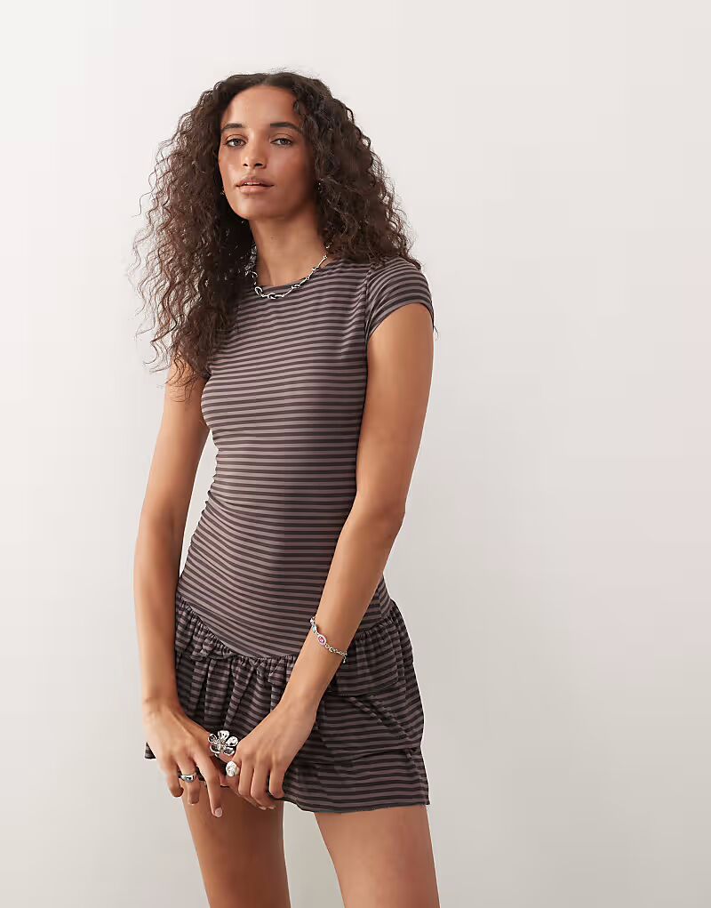 Мини-платье с рюшами в коричневую полоску в стиле гранж Collusion