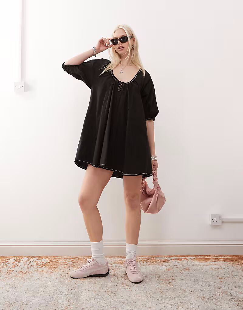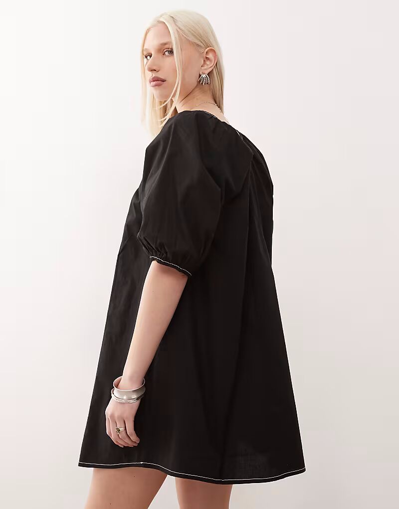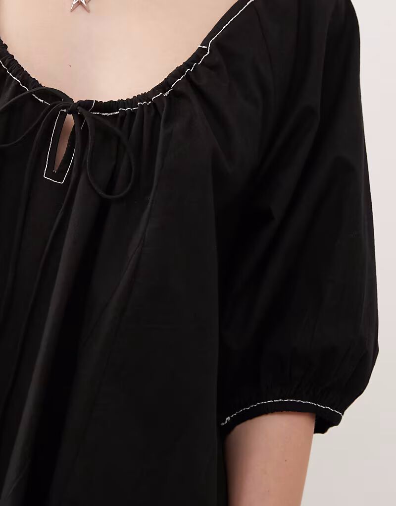 Платье мини-блузка с рукавами-фонариками черного цвета Collusion