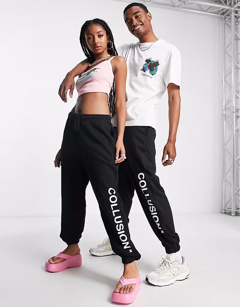 Унисекс-джоггеры с логотипом черного цвета Collusion