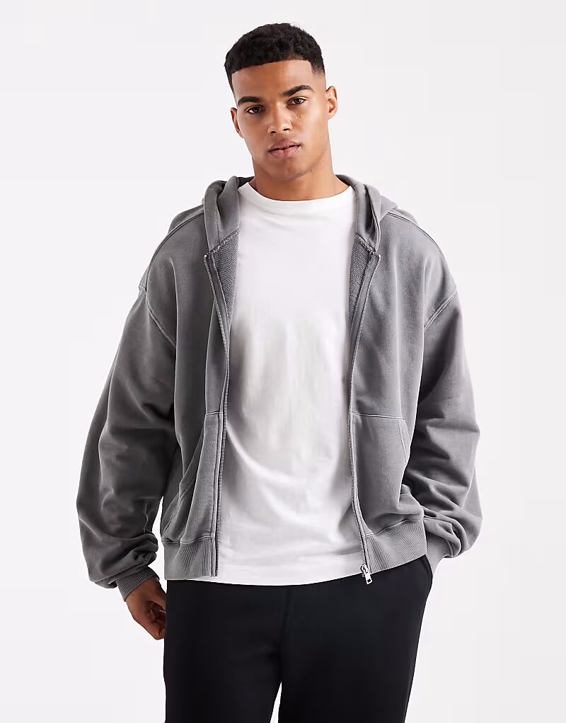 Укороченная толстовка с капюшоном на молнии серого цвета Cotton On 8 383₽