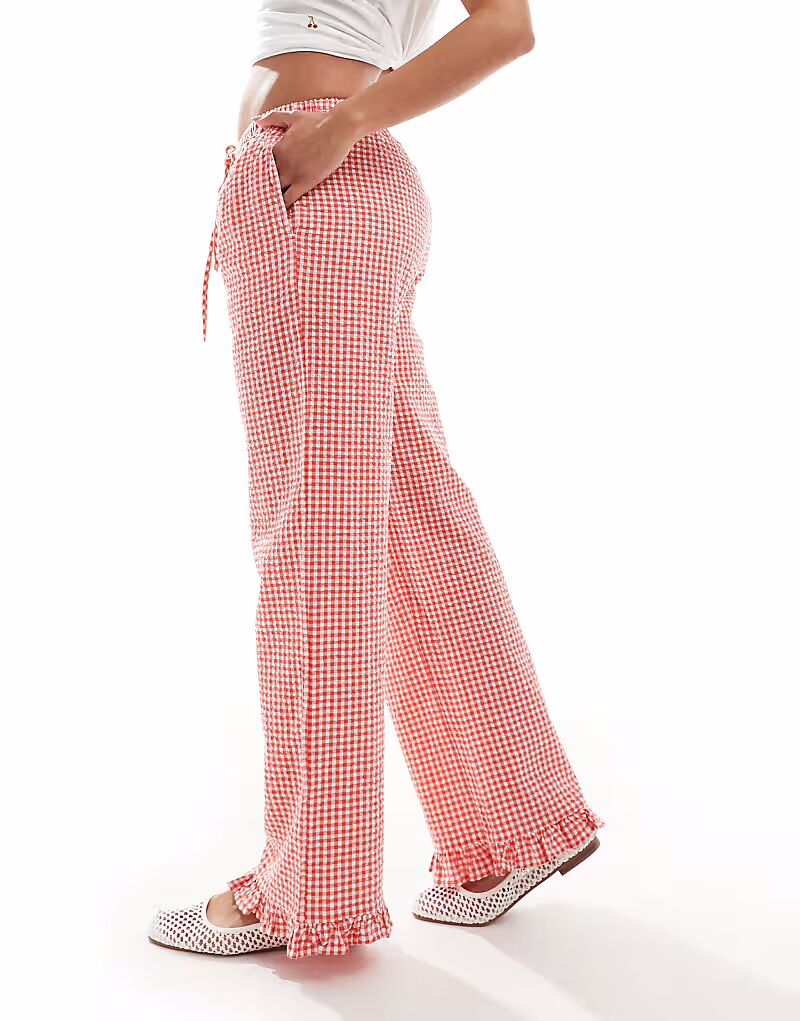 Брюки из сирсакера Haven в нектариновом клеточку Cotton On