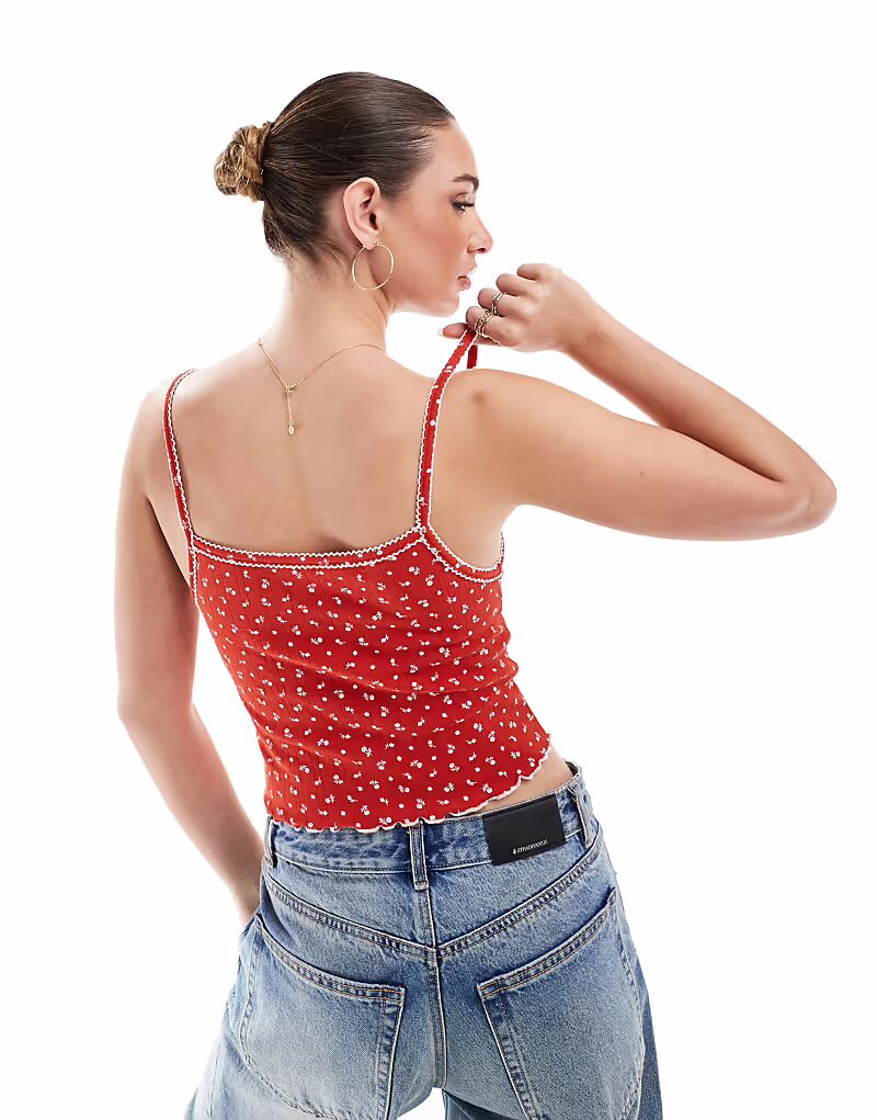 Укороченный топ-топ Pointelle Cami в красном цвете Cotton On