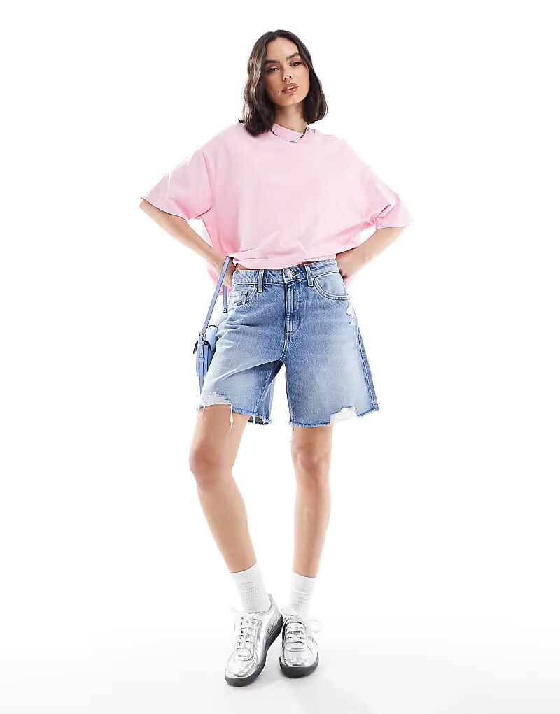Свободные джинсовые шорты цвета морской волны Cotton On 3 917₽