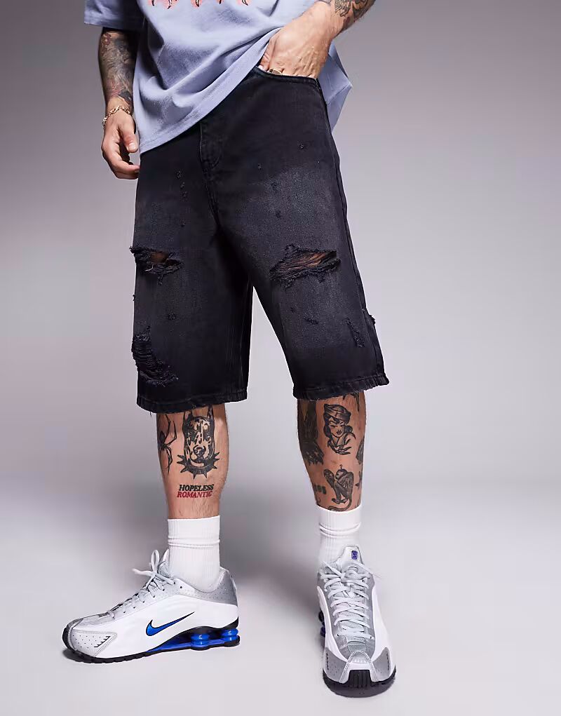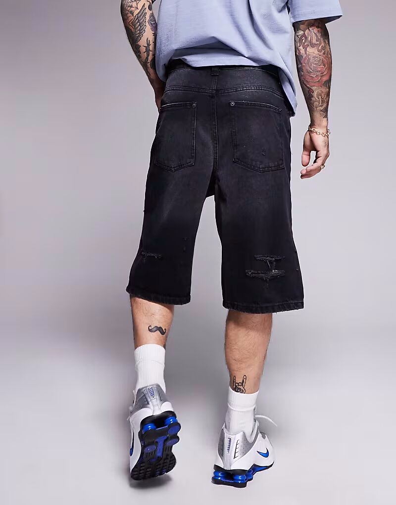 Джинсовые шорты с экстремально потертым эффектом черного цвета Courtside