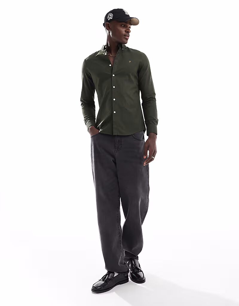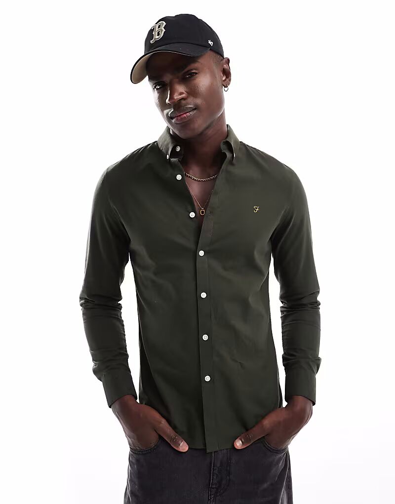 Рубашка Oxford с длинными рукавами цвета хаки Brewer Farah