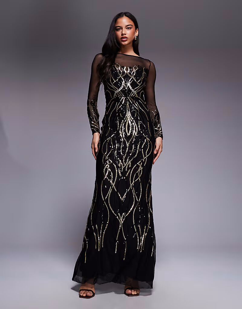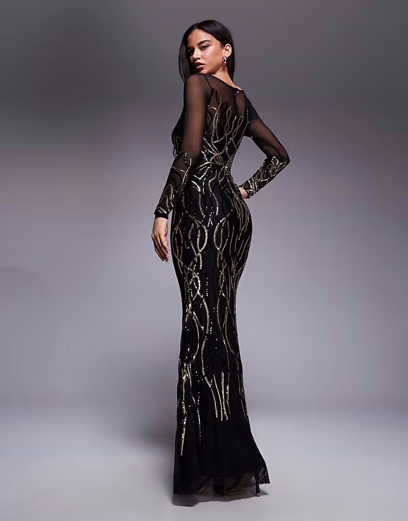 Платье-макси с длинным рукавом, блестками Goddiva, золотой 12 679₽