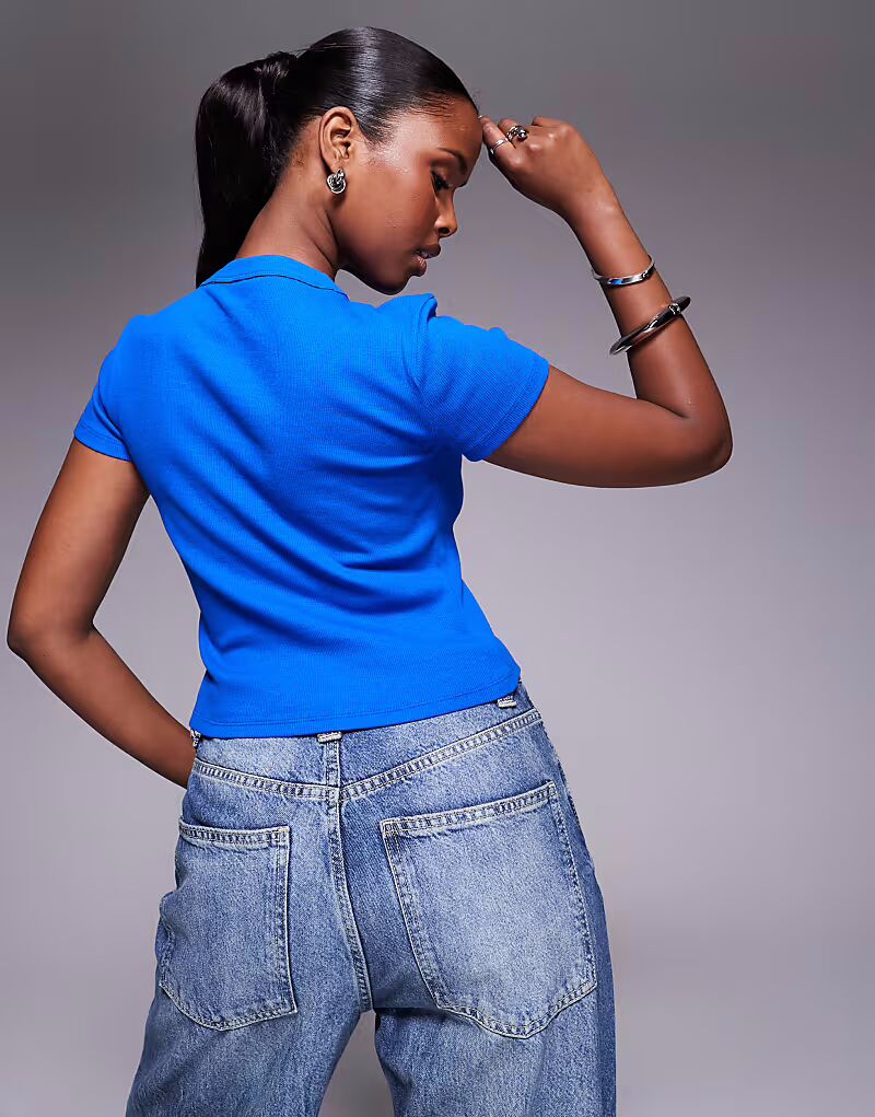 Укороченный топ Baby Tee синего цвета Hugo Blue