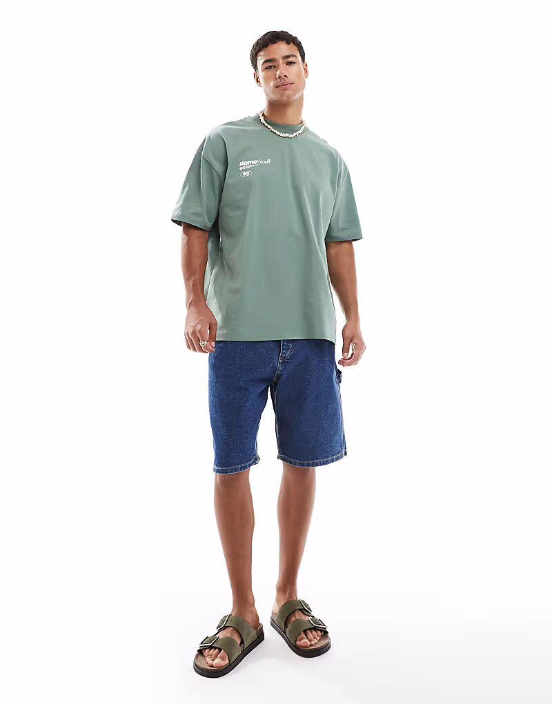 Мешковатые джинсовые шорты в цвете «плотник» средне-синего цвета Jack & Jones