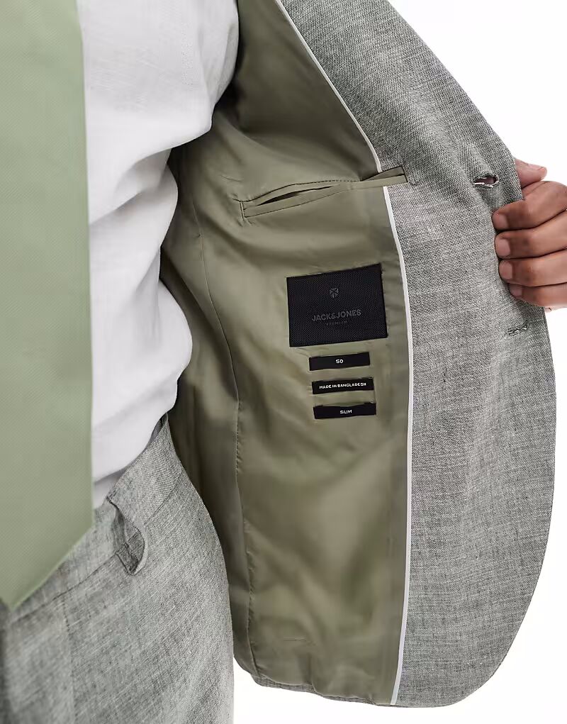 Льняной пиджак зеленого цвета Jack & Jones