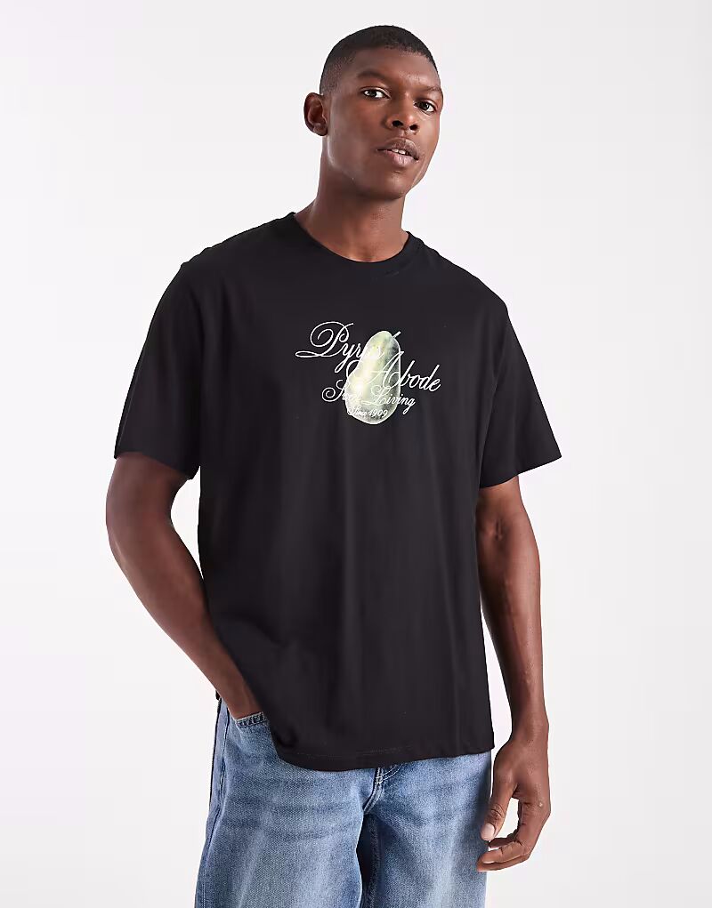 Футболка oversize с принтом груш черного цвета Jack & Jones