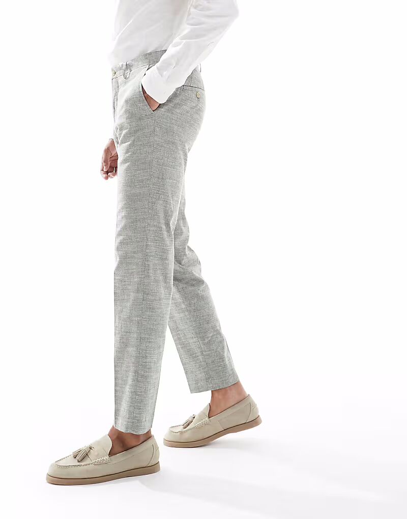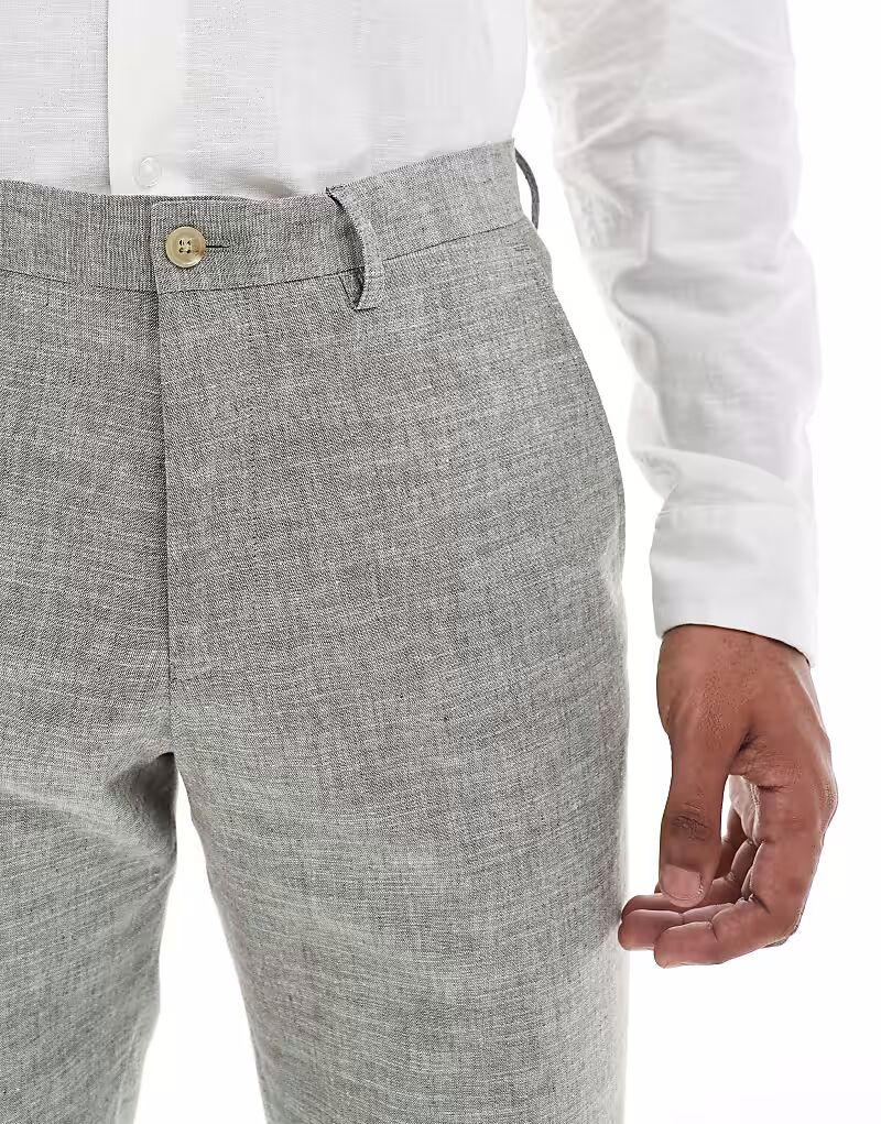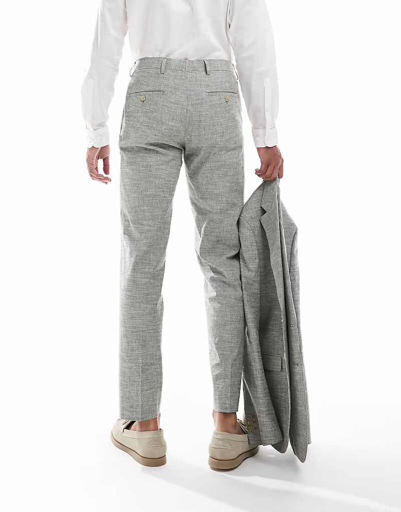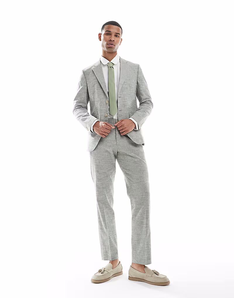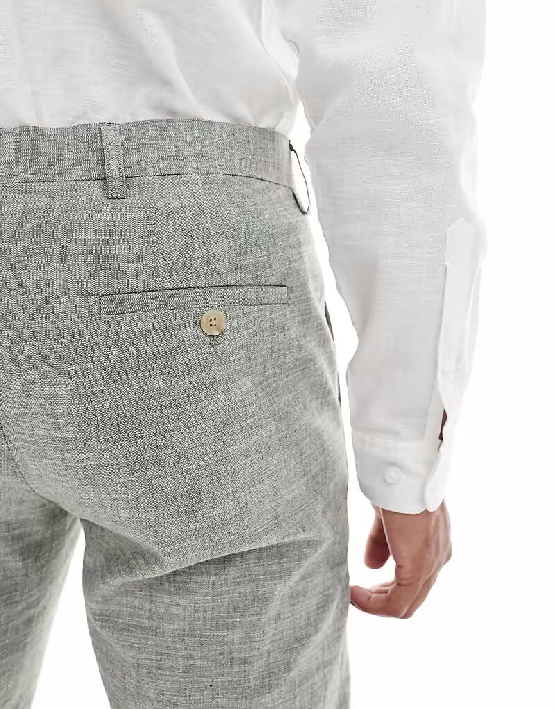Брюки костюма из льна зеленого цвета Jack & Jones