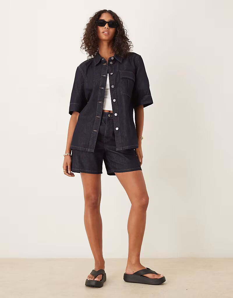 Рубашка с короткими рукавами из темно-синего денима Jdy