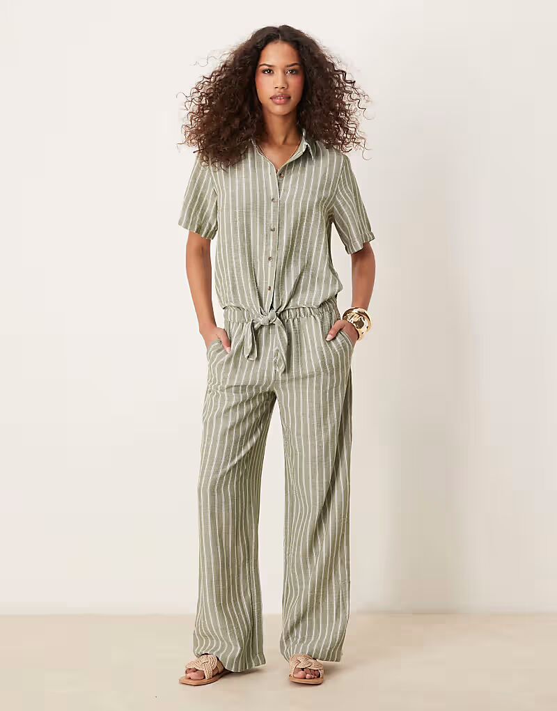 Широкие брюки в полоску шалфея Jdy