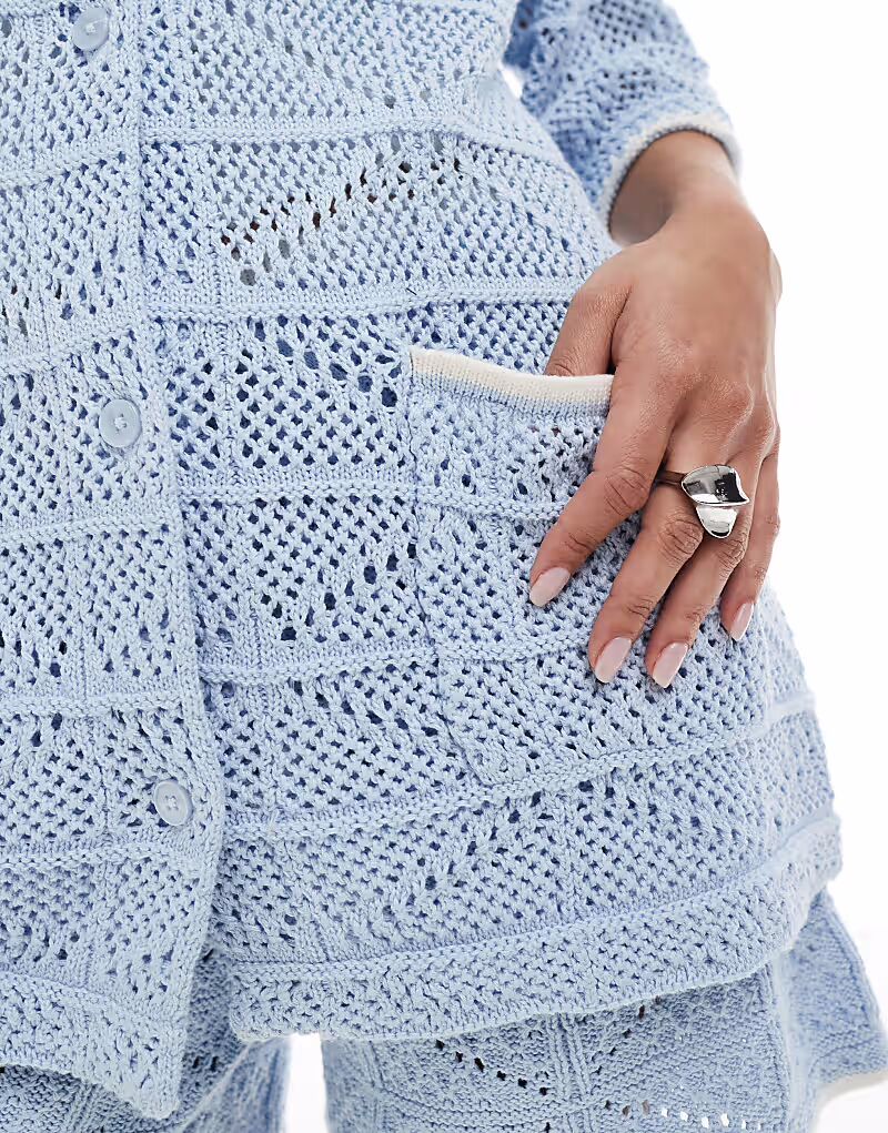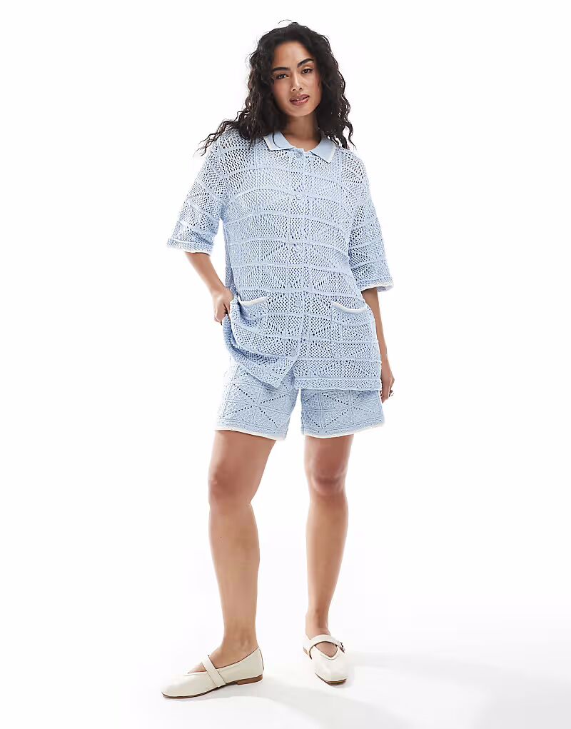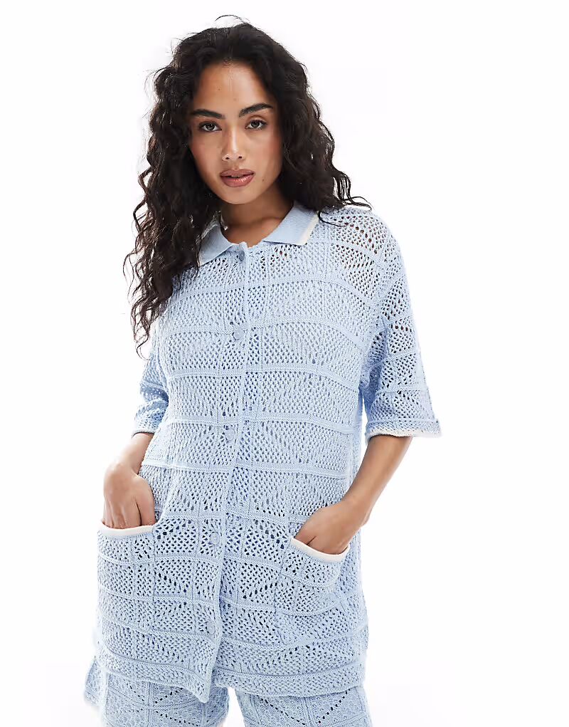 Вязаная крючком рубашка coord синего цвета Jjxx