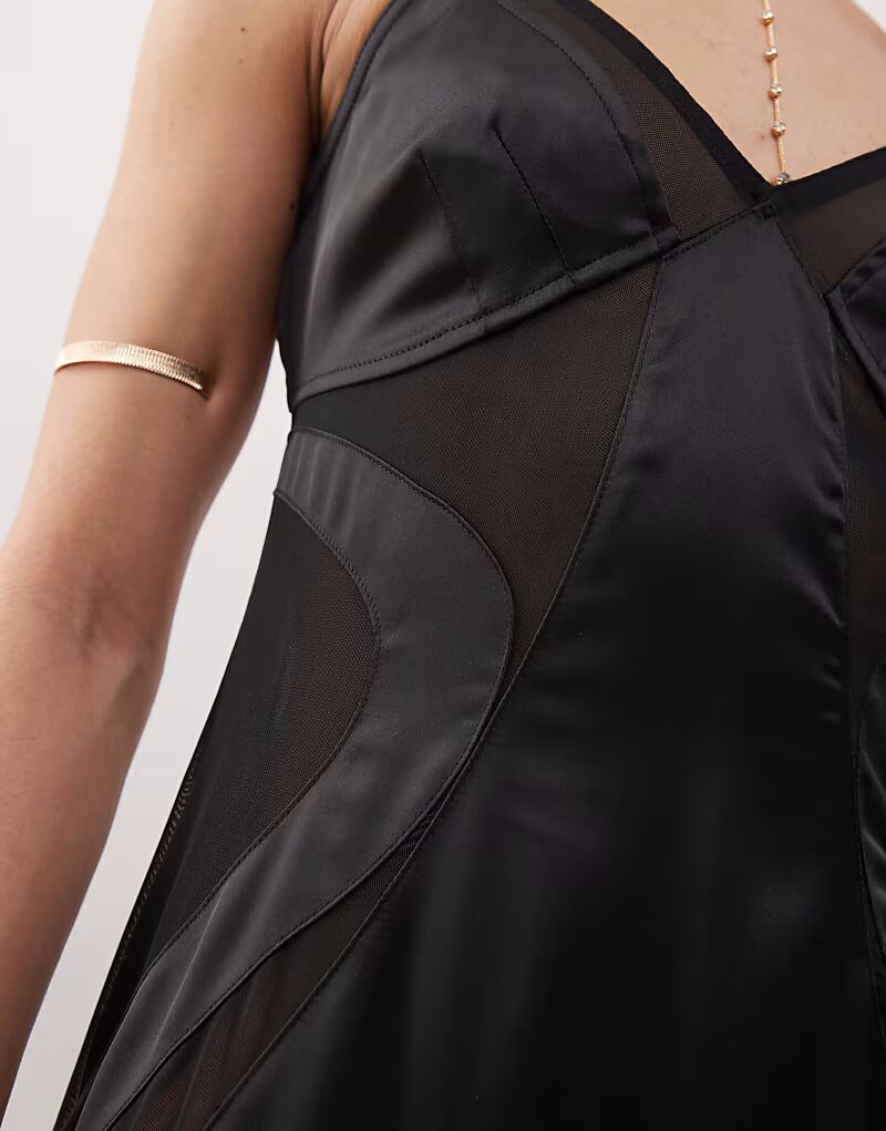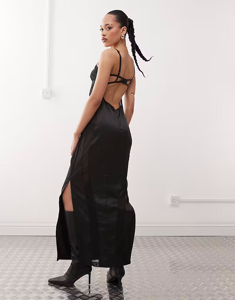 Платье макси из атласной сетки с вырезами, черное Labelrail