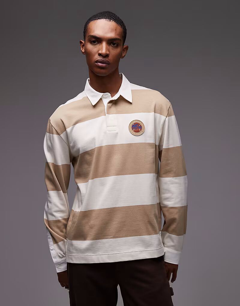 Рубашка регби в полоску бежевого цвета Lacoste 13 151₽