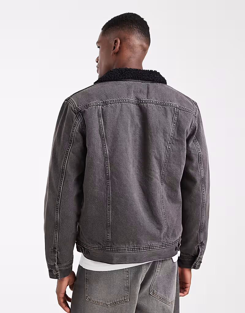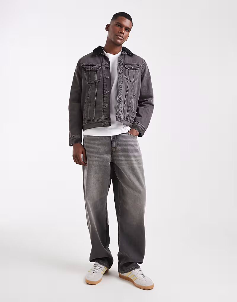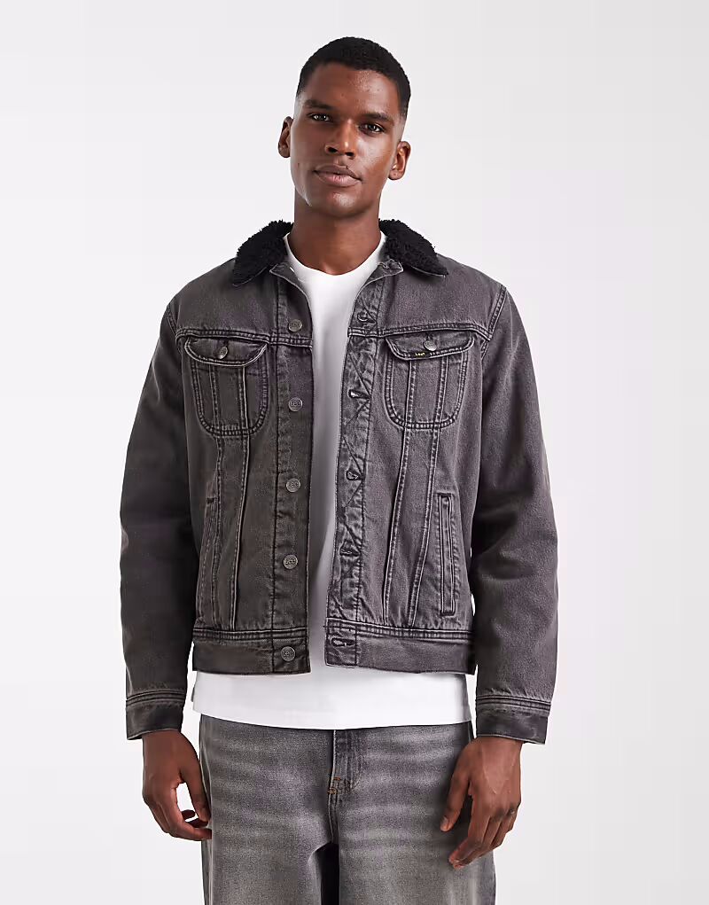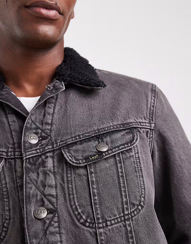 Джинсовая куртка из шерпы серого цвета с эффектом потертости Lee