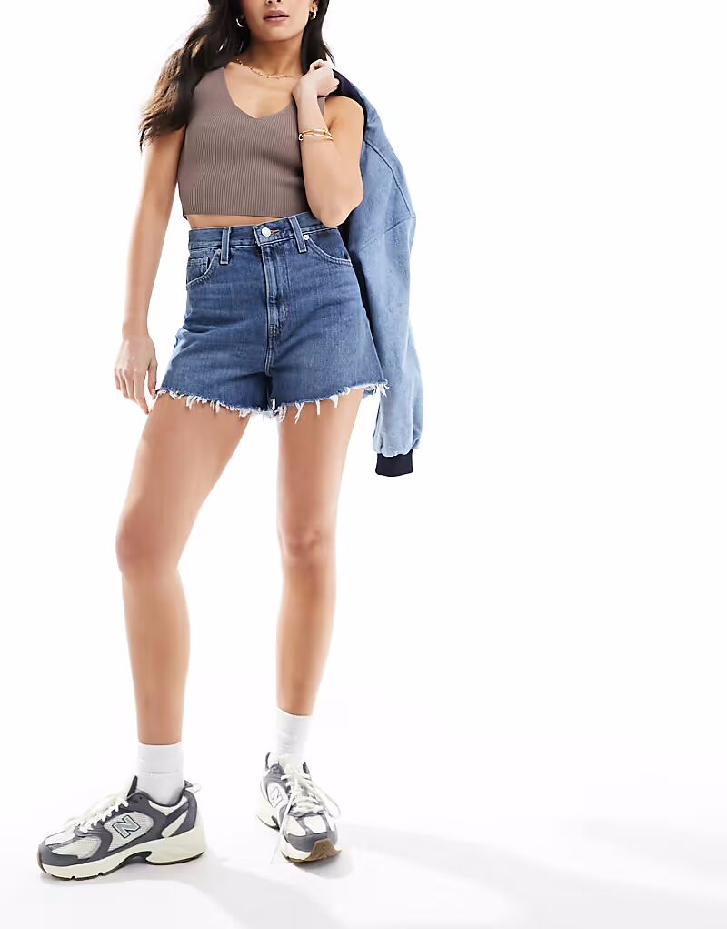Джинсовые шорты mom с высокой талией синего цвета Levi'S