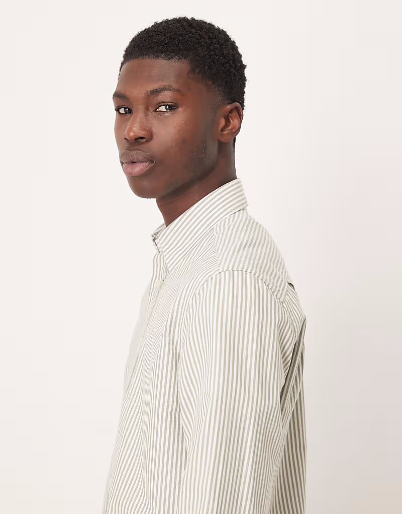 Рубашка из 100% хлопка в полоску цвета хаки Mango