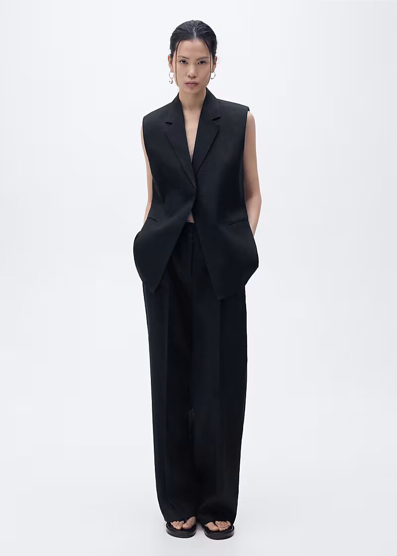 Прямые брюки из 100% льна черного цвета Mango 9 087₽