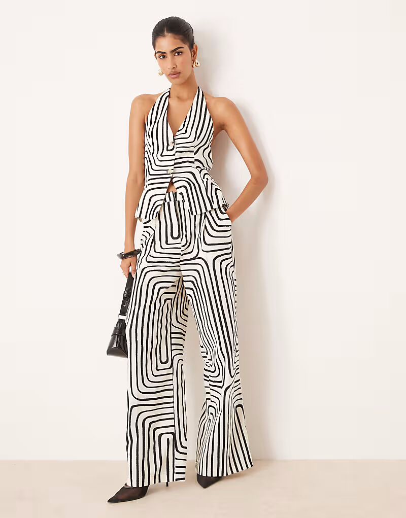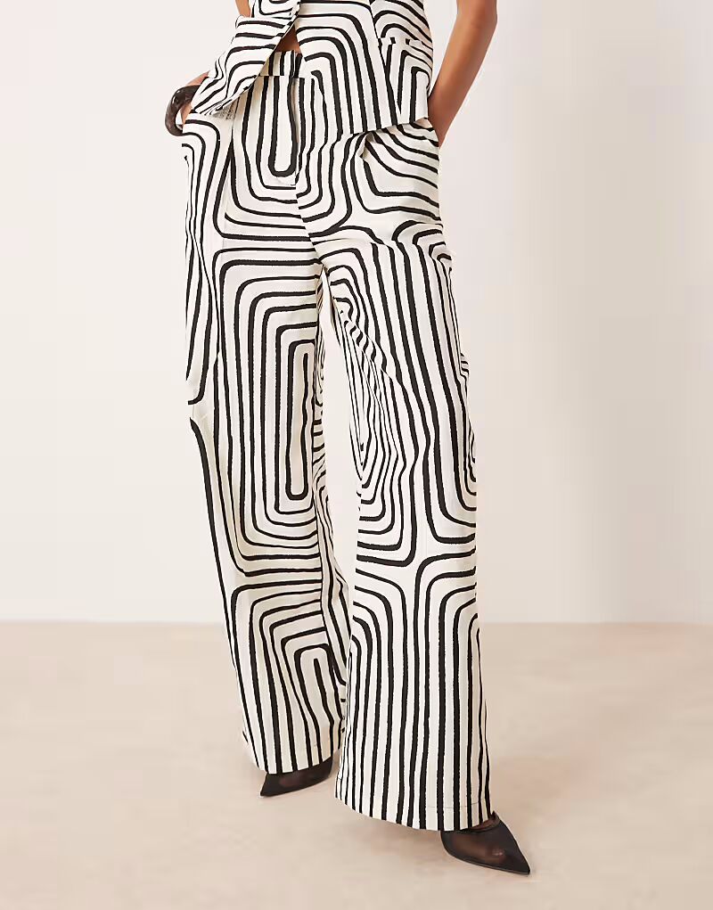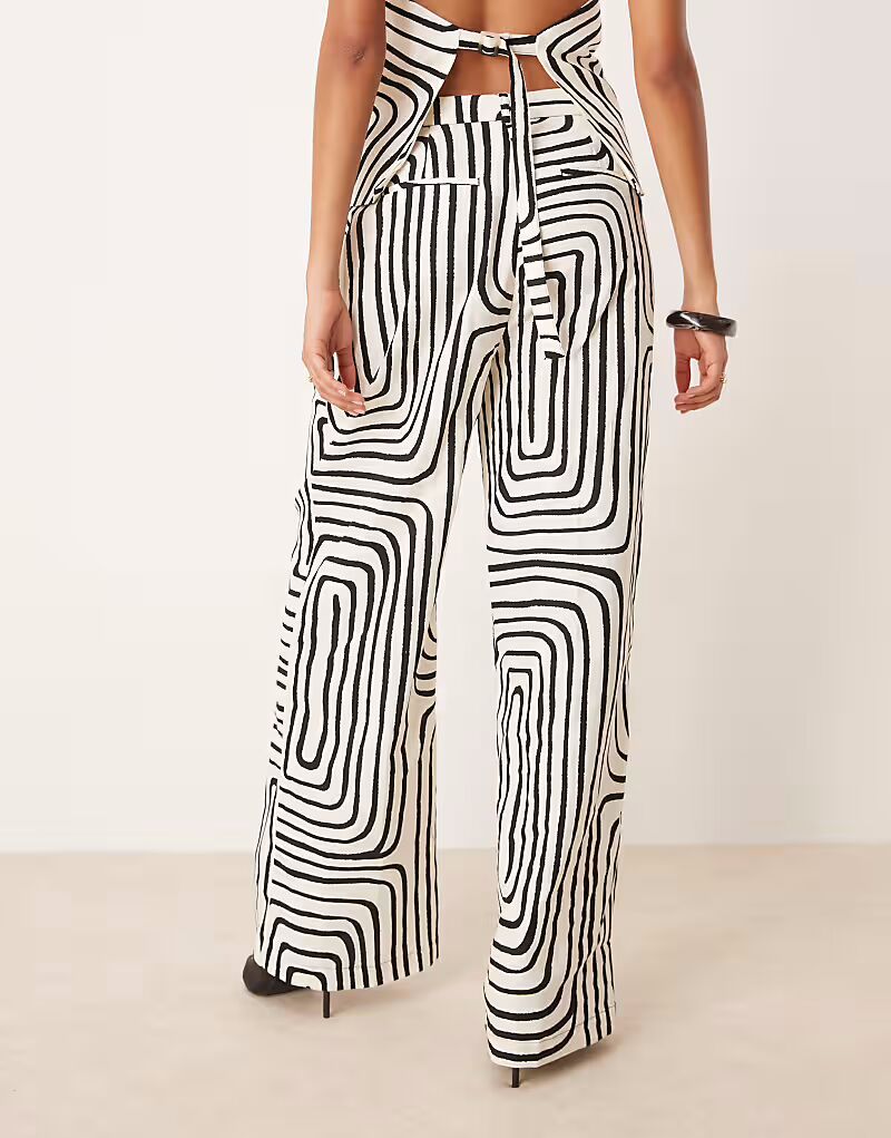 Широкие брюки из смеси льна с принтом каракулей, белые Mango 6 510₽