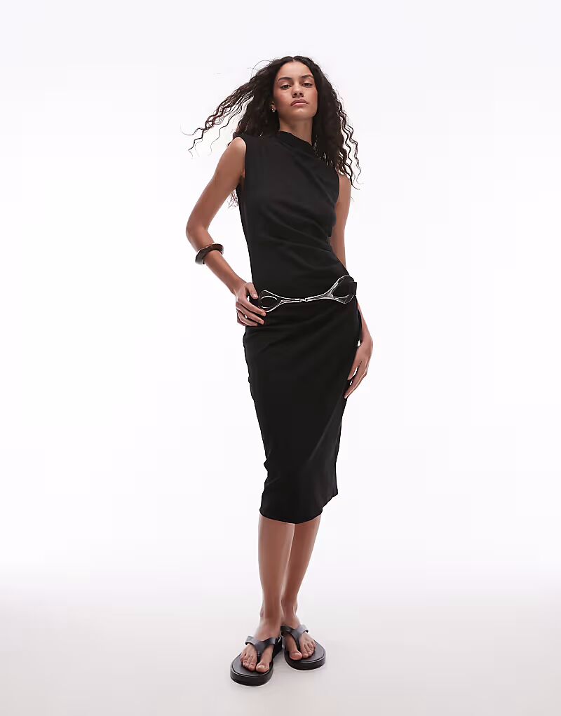 Платье миди без рукавов с высоким воротом, черное Mango