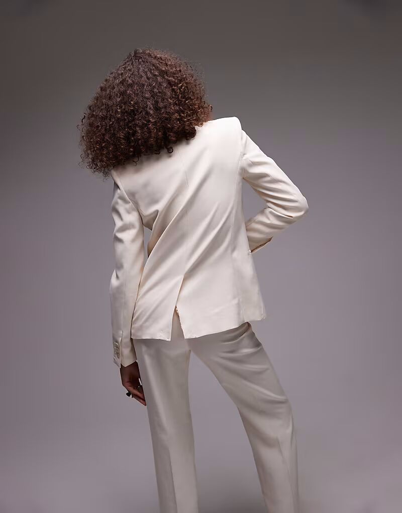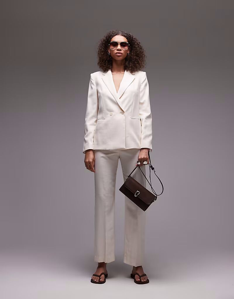 Комбинируемый льняной блейзер бежевого цвета Mango
