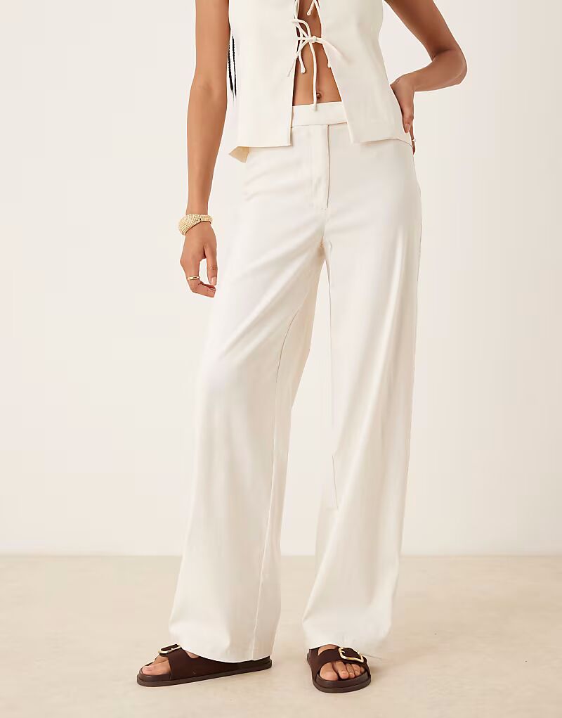Узкие брюки из смеси льна белого цвета Mango 7 030₽