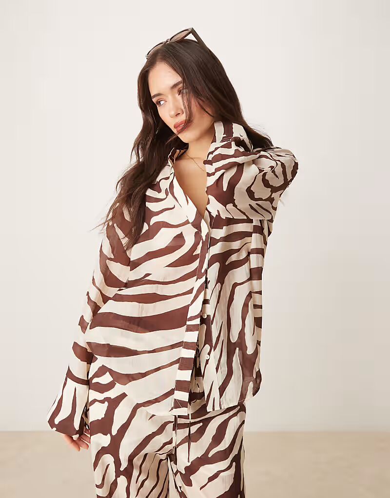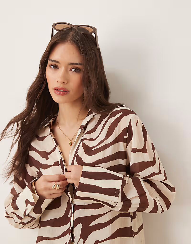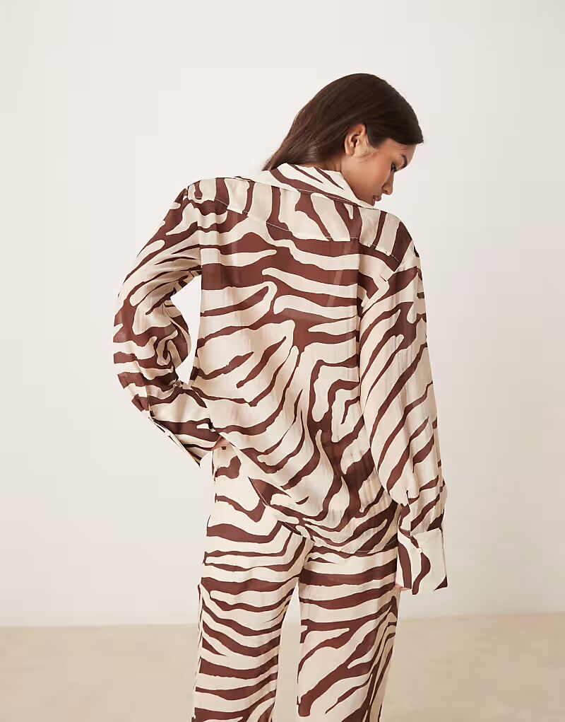 Рубашка свободного кроя с коричневым принтом зебры Mango