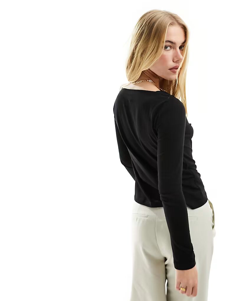 Топ с длинными рукавами и вырезом-слэш, черный Mango 2 791₽