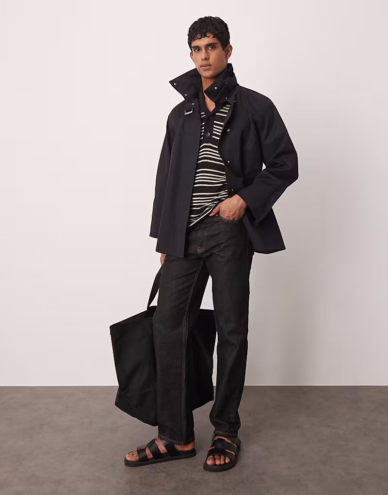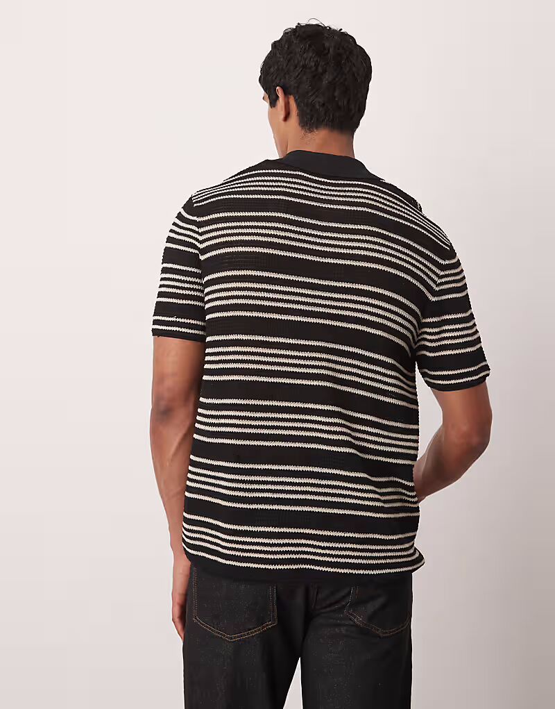 Рубашка-поло с полосками манго, связанная крючком в черно-белом цвете Mango