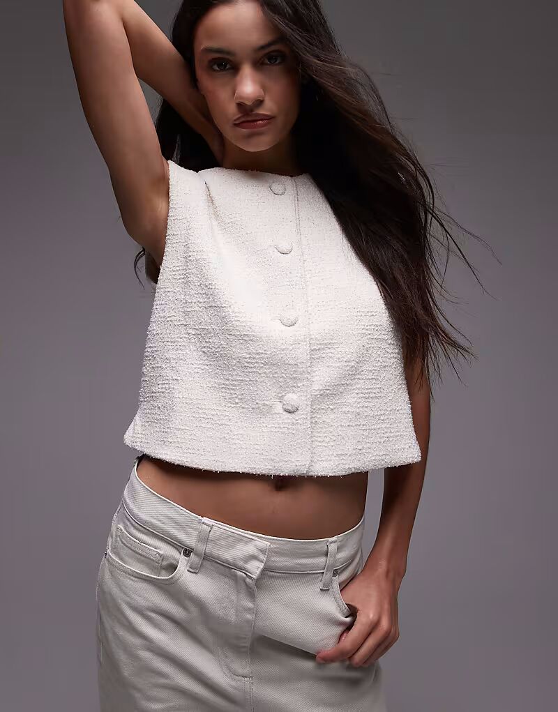 Жилет с круглым вырезом, белый, приталенный Mango 5 427₽