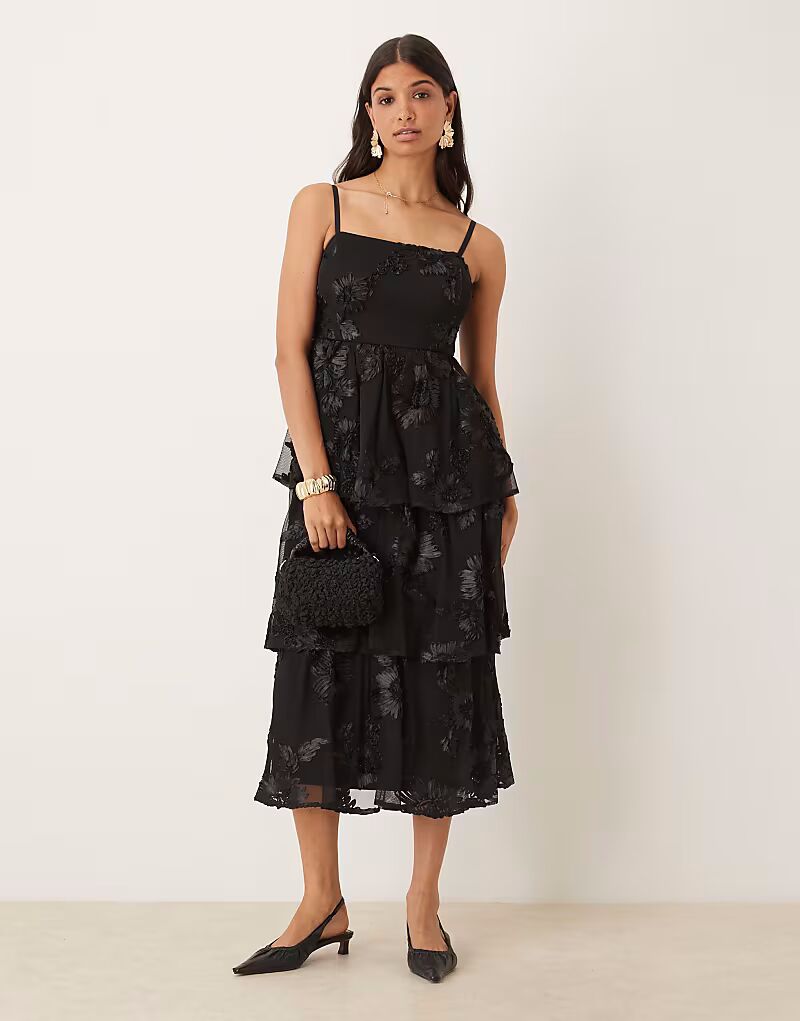 Платье миди Floral с ярусами, черное Maya 12 947₽
